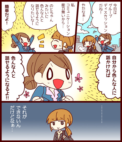コミュニケーションがうまく取れないと思うと辛いですが、無理にうまく話をしようと思わなくても良いのではないでしょうか。コミュニケーションが取れるとは、互いに「信頼できる」「協力できる」ということですからそのために、自分は何が出来るかという視点で考えてみましょう。