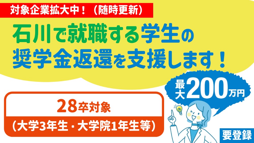 【28卒対象_学生募集】いしかわ就職応援奨学金返還助成制度